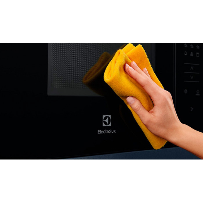 Гладка поверхня мікрохвильової печі виготовлена з високоякісного скла, стійкого до подряпин і відбитків. Такий тип оздоблення запобігає скупченню пилу і бруду. Усього кількома помахами тканини плити знову засяє і стане функціональною прикрасою вашої кухні!