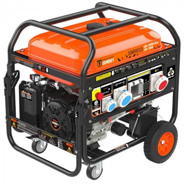• Генератор бензиновий GENERGY SOMPORT 8,3 кВт/9,2 кВт – однофазний та трифазний генератор 230В/400В преміум класу з максимальним захистом від ураження струмом навіть при експлуатації в умовах підвищеної вологості. Підходить для постачання електроенергії до будинків, офісів, будівельних майданчиків, майстерень, кемпінгів і т.д. Здатний забезпечувати роботу електроприладів із сумарною потужністю до 9 кВт (номінальна потужність, напруга 400 В) або до 8 кВт (номінальна потужність, напруга 230 В). Максимальна потужність для даної моделі: 9,2 кВт (400 В) та 8,3 кВт (230 В).